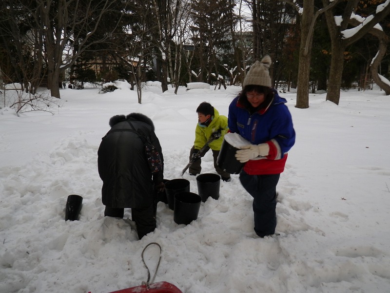 寒い中、アイデアを凝らしたたくさんのキャンドル製作と点灯中の灯りの管理をしてくださったボランティアの「豊平公園花とハーブの会」「リラの会」の皆さん、さっぽろ園芸学校の皆さん、豊平公園およびほか公園のスタッフほか、ご尽力くださった方々、また、日中も点灯時も公園に見に来てくださったたくさんのお客様、本当にありがとうございました。