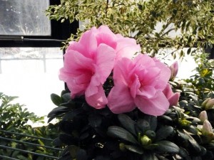 豊平公園緑のセンター展示温室ではアザレアの花が満開に色づき、