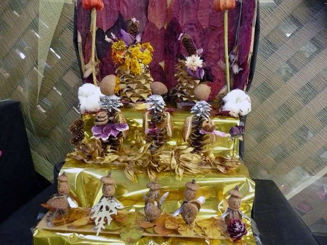 豊平公園で採れた木の実、花、枝を使って作りました。