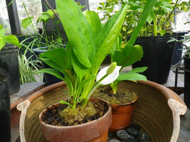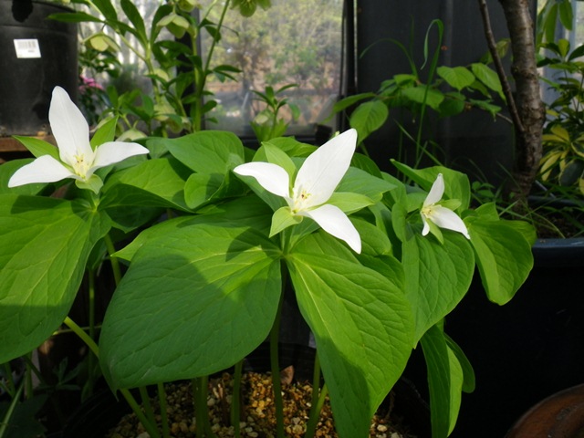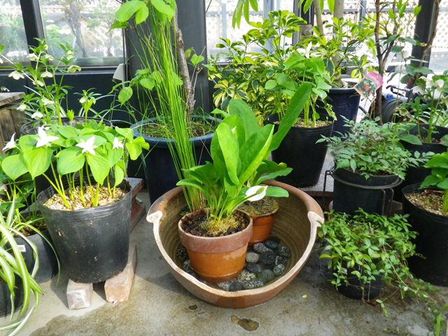 ミズバショウとオオバナノエンレイソウを展示中です。