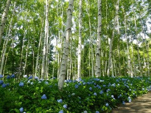 お次は豊平公園の代表ともいえるアジサイとシラカバ林