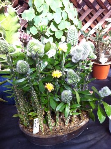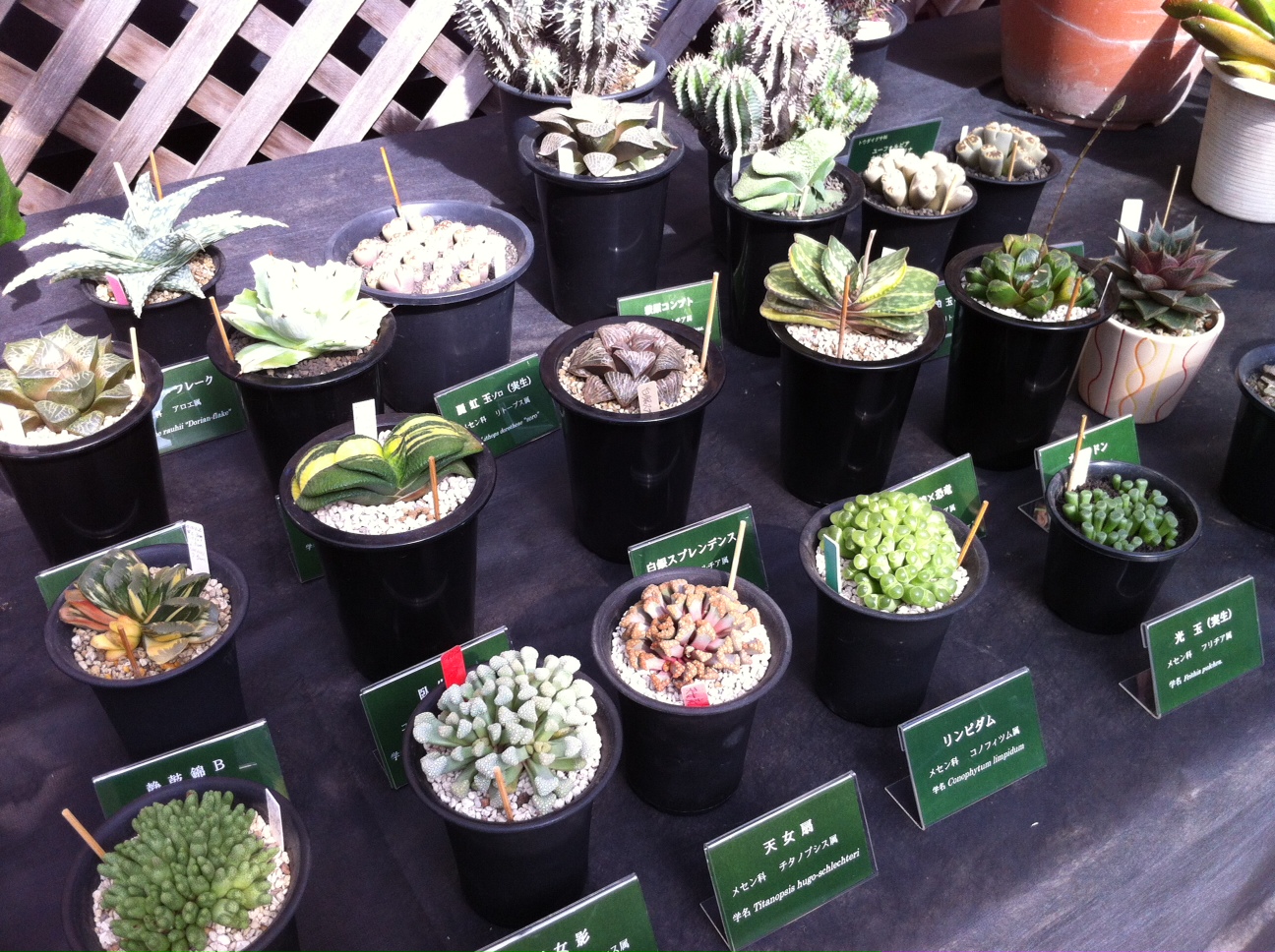 多肉植物の寄せ植えなど賑やかな展示会です。
