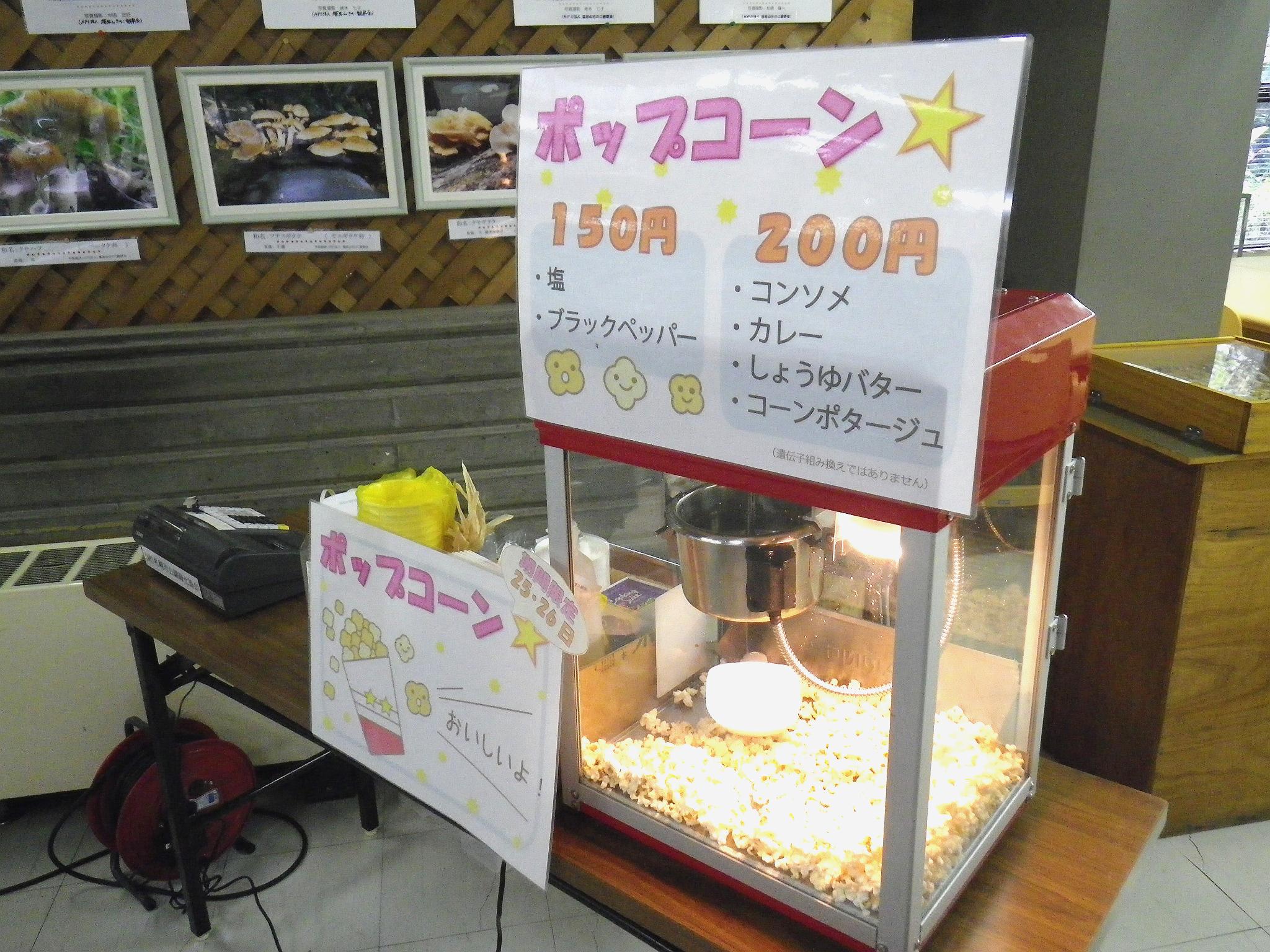 また、きのこ展の期間限定でポップコーン販売を行っております。