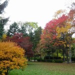 ←芝生広場。ナナカマドのグラデーションがいいです。でも、中央のノムラカエデはまだ赤くない・・・