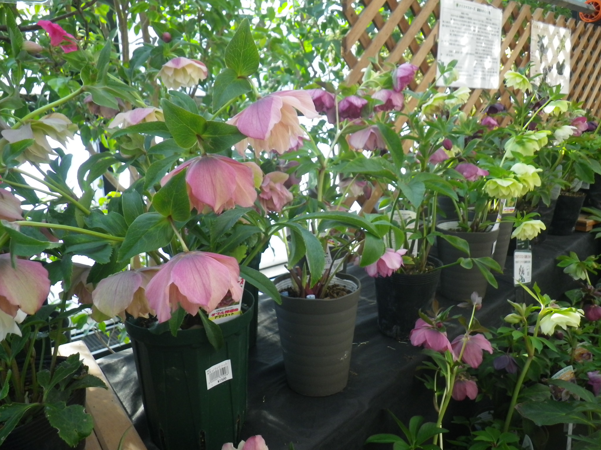 クリスマスローズの特徴でもありますが、同じ色や花形の鉢がほとんどなく、