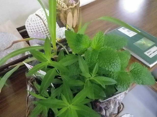 ↑今日のティーはレモングラス(写真左奥)、レモンバーム(右奥)、レモンバーベナ(手前)