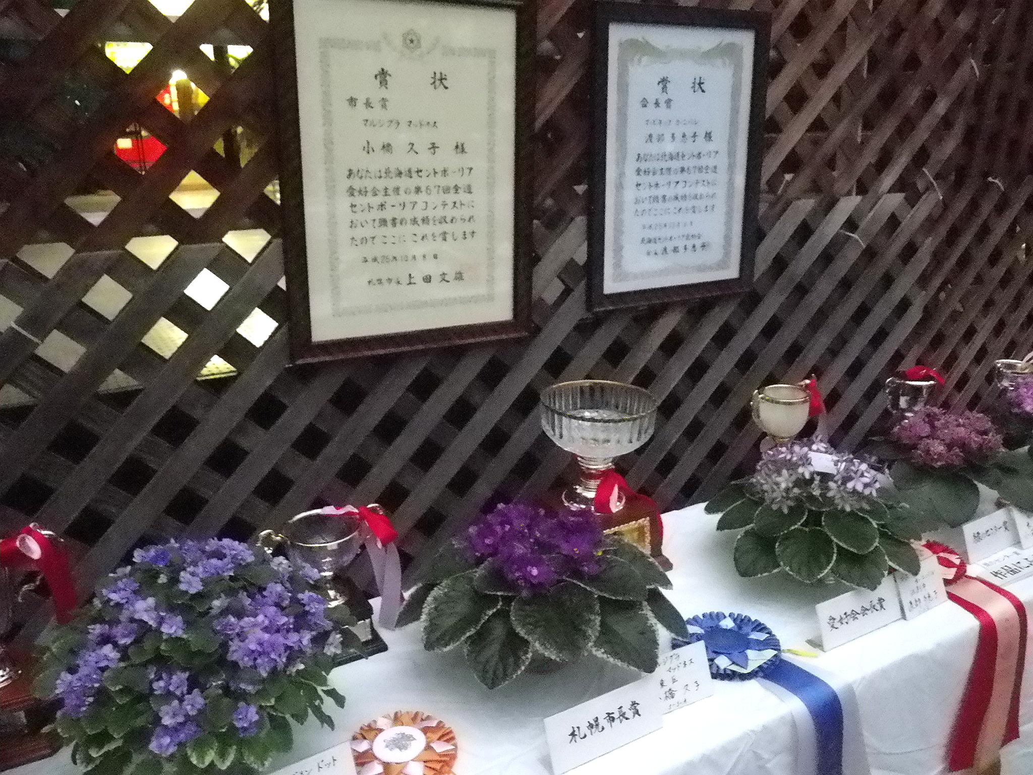 北海道セントポーリア愛好会の皆さんの栽培品83点が展示されてます。
