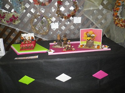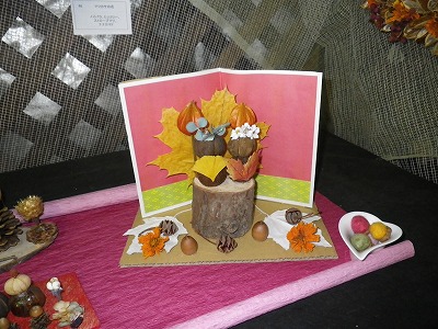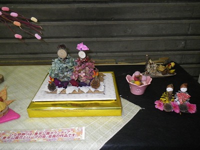 木の実や落ち葉で作った「おひなさま」をホールに展示しました。
