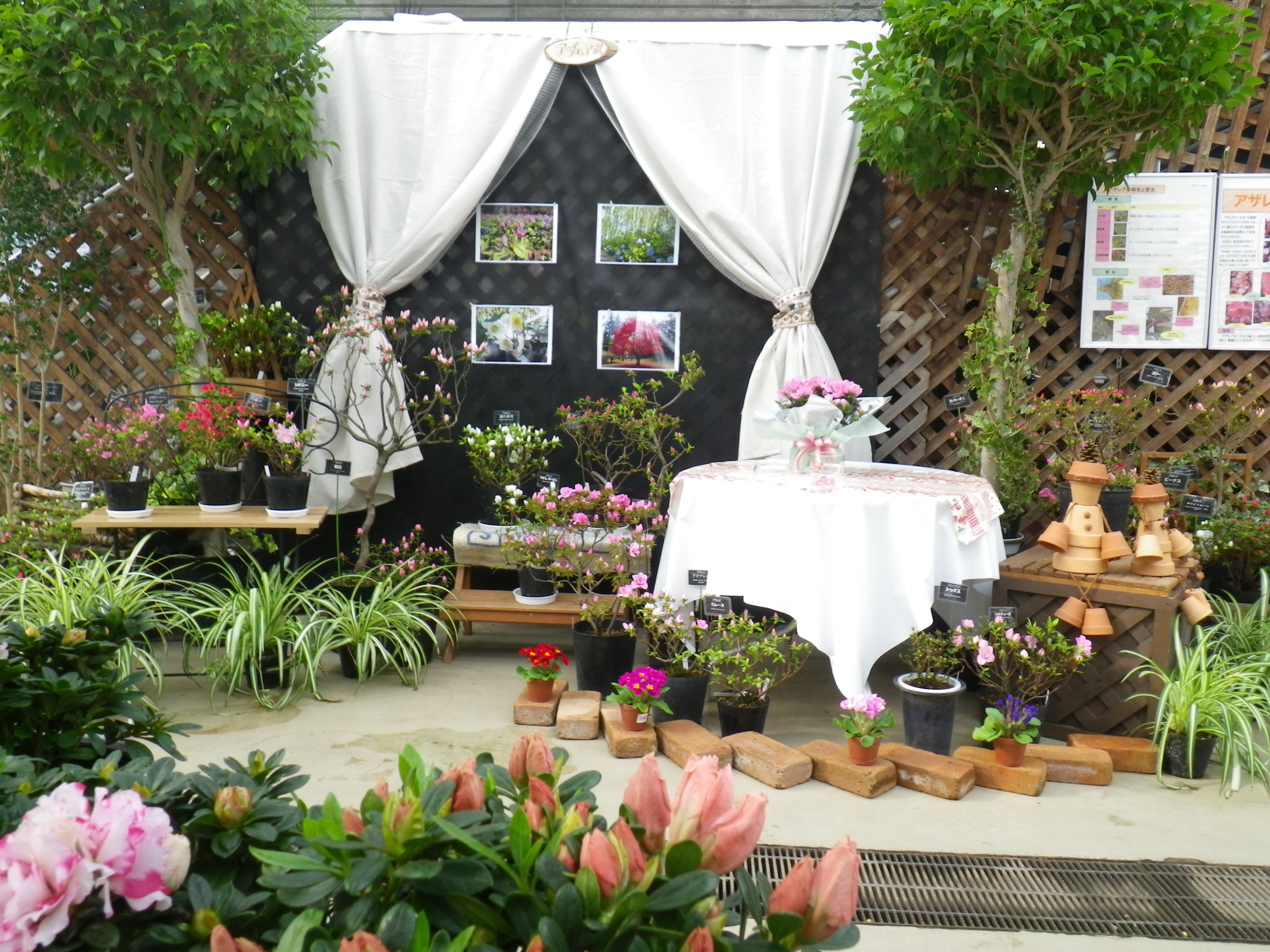 緑のセンターでコレクションしているアザレアの展示を行っています。