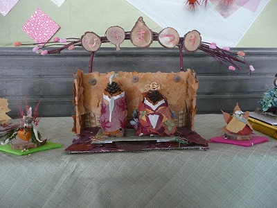 木の実やドライフラワーなどで作ったおひなさまを展示しています。