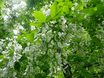 マメ科の植物でニセアカシアの花のように房がたれています。