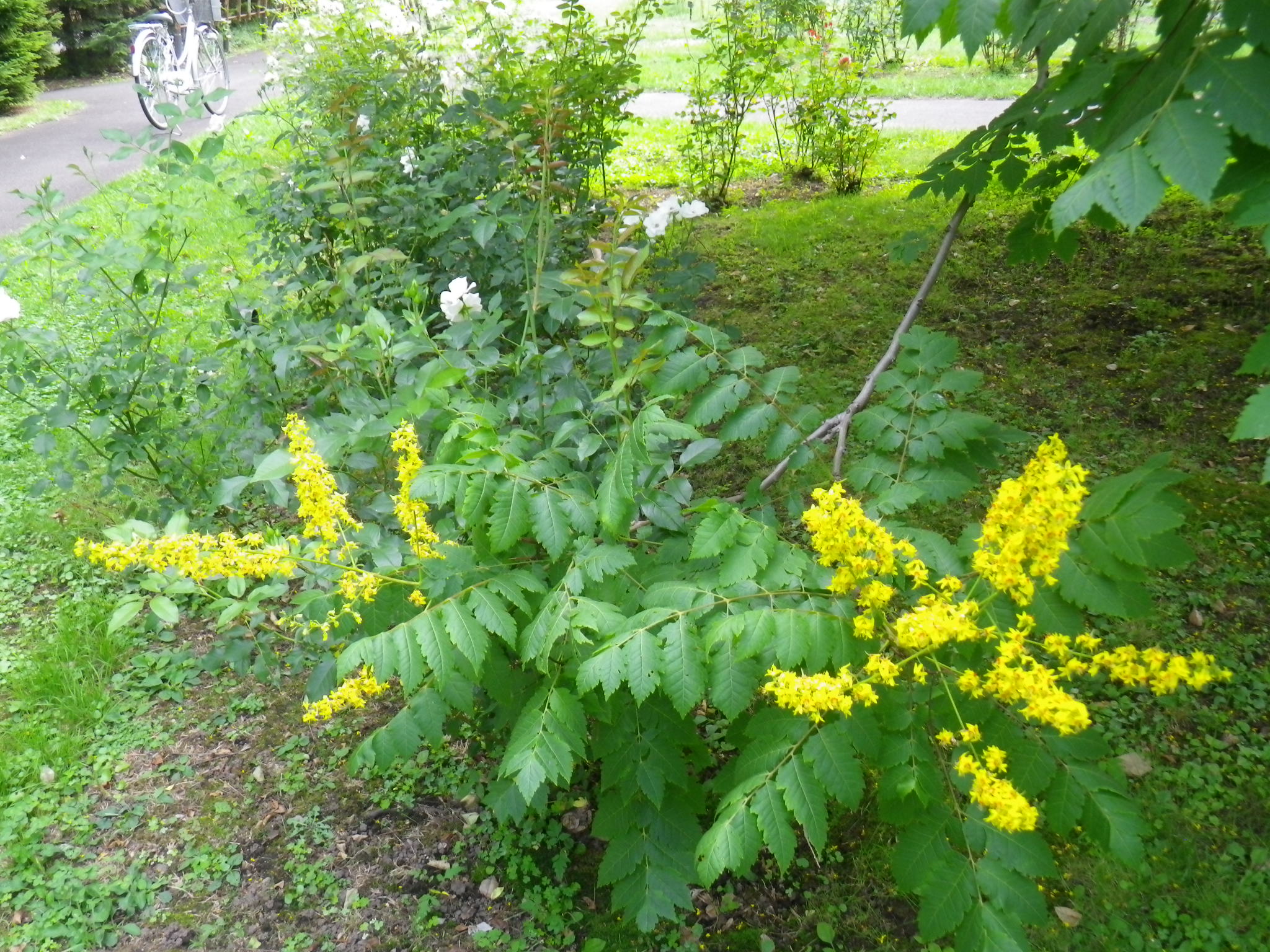 右の写真のように枝が下まで垂れ下がっているので花の様子を見るにはうってつけかも。
