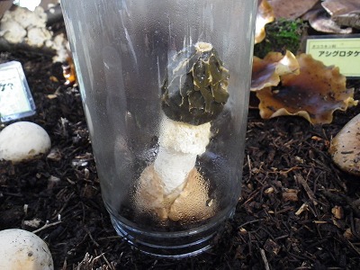 札幌近郊で採取したキノコを鑑別し、名前と食毒の別を書いたラベルをつけて展示しています。