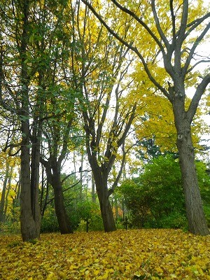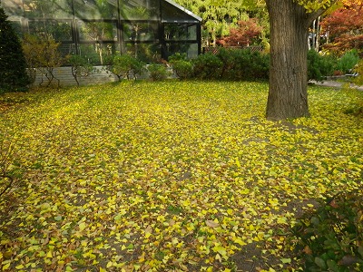 風が吹く度にハラハラと舞い落ちて、木の下は黄色い絨毯になってきました。
