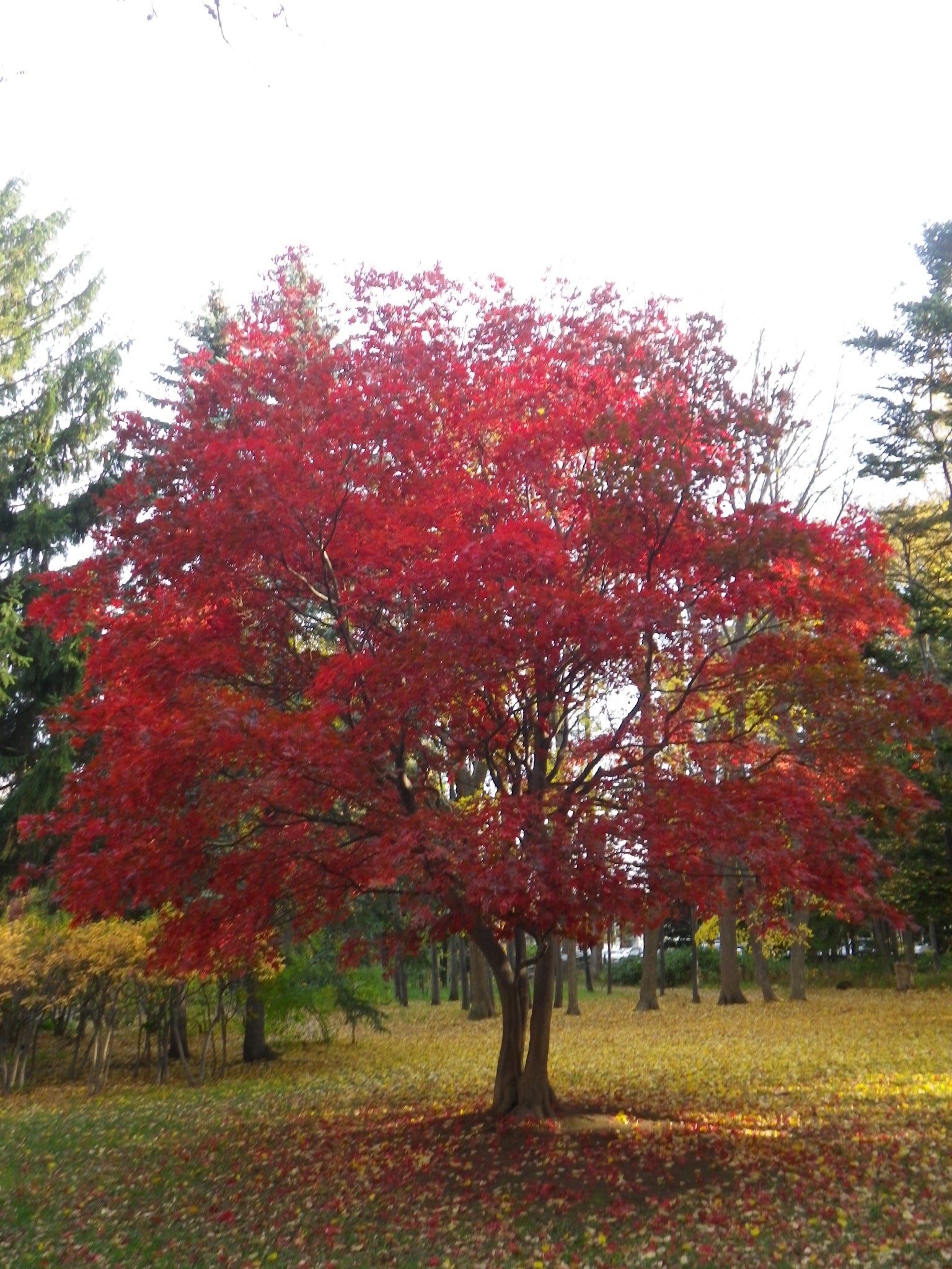 もう一つ、皆さんがよく楽しみにしてくださっている芝生広場の真ん中に立つノムラカエデ。