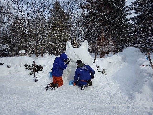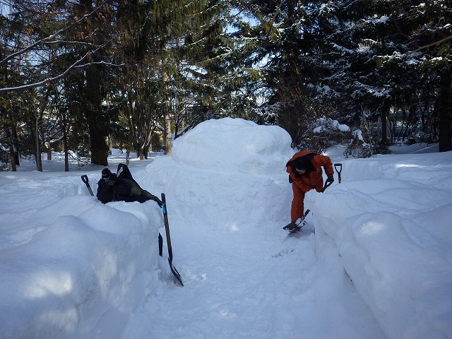 朝は雪が降っていたので、除雪機をかけている間にスノーキャンドルを作成。