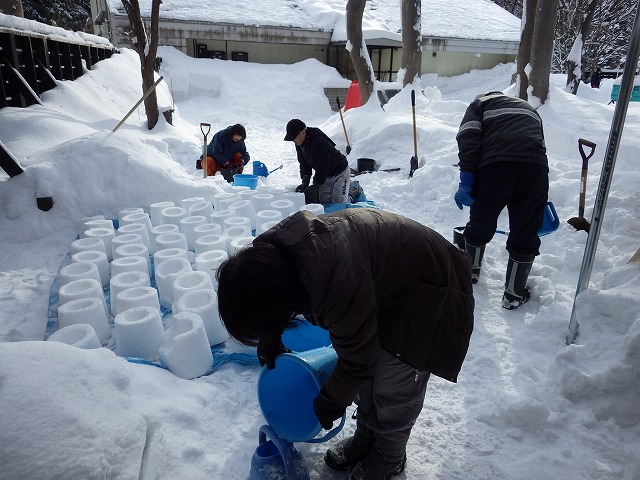 今朝は朝からスタッフ、ボランティアさんみんなで会場やスノーキャンドルを作っています。