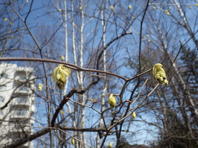 左上の写真はヒュウガミズキ。黄色いベル状の花が可愛らしいですね。