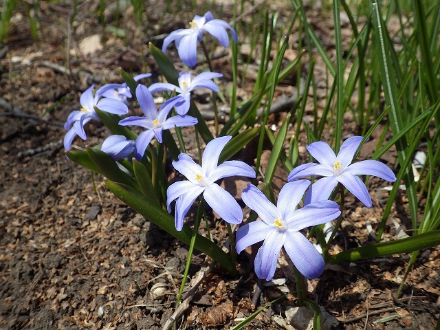 チオノドクサは以前は大きな園路の生垣の陰にあるクロッカスの中に