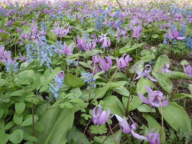 左上の写真はブロックの北側、あとから咲いてきた花が多いのでカタクリもきれいです。