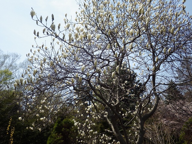センター横のハクモクレンは今年もたくさんの蕾がついて非常にきれいです。