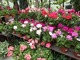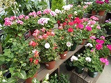 たくさんのゼラニウムが色鮮やかに咲いています。