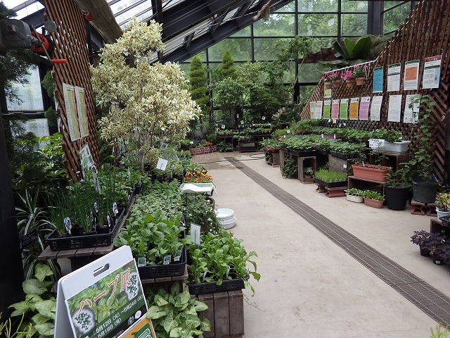 上の写真の階段側が「野菜展」、写真左側がハーブ展です。