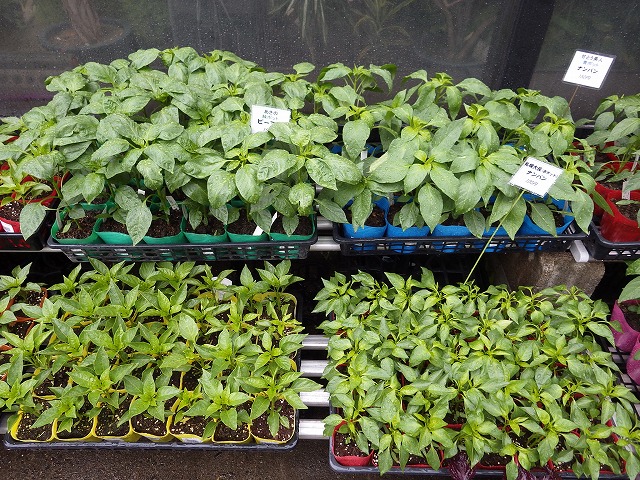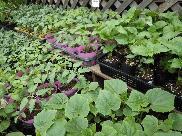 シソ、トマト、ナス、種イモ、キュウリ、ナンバン、ヤーコン、パセリ、小玉スイカ、ネギ・・・・