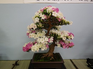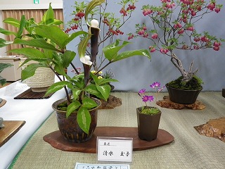 松柏などの鮮やかな新緑、サツキやツツジ類の花や芽吹き、可憐な花をつけた山野草が春の展示会の見所。