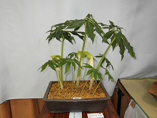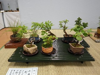 これらのほかにもゴヨウマツなどの松柏類のほか、八重咲きエンレイソウ、サツキや姫リンゴなど様々な盆栽の展示をしています。