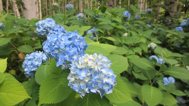 シラカバの白い幹と青いアジサイの組み合わせが合っていて、自画自賛ですが素人の私が撮っても絵葉書に出来そうな写真が撮れます。天気のいい日は私のデジカメより遥かに性能がいいカメラを持った方がいらっしゃってます。もっと素敵な写真を撮っているのでしょうね。