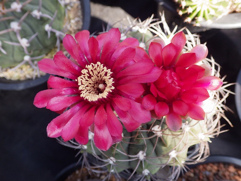 昨年、カクタスクラブの会員2名が育てている雄株と雌株の開花を合わせ、