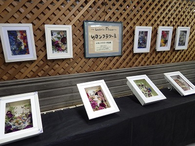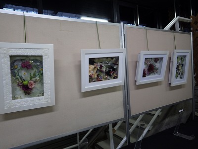 レカンフラワー協会ほっかいどうフルールアールの会員の皆さんの作品が並びます。