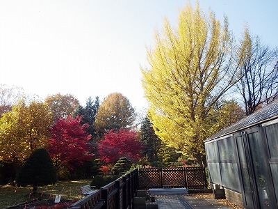 今一番きれいなのはセンター横のノムラカエデとイチョウです。
