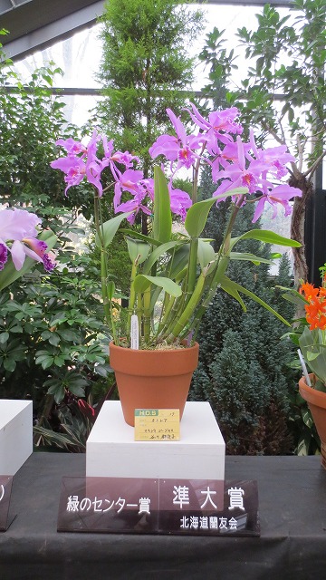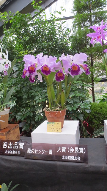今日から始まった洋ラン展は今年で34回目となり、北海道蘭友会の皆さんの力作114鉢が並んでいます。