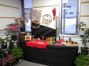 色んなお雛様が並んでいますね。雛リースもあります。リースはクリスマスとお正月だけでは