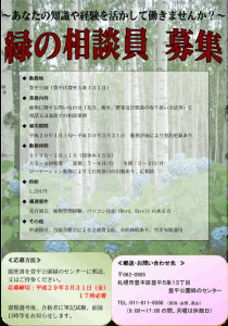 豊平公園では公園スタッフと緑の相談員を募集します。