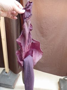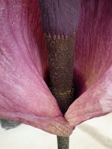苞を広げて付け根付近を見ると・・・白っぽかった雄花がまっ茶色に。