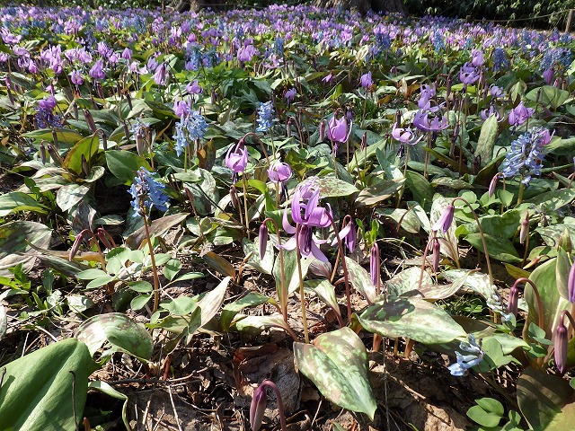 センター内では鮮やかで色とりどりの花が咲き乱れていますが、公園内ではカタクリが半分程、咲き