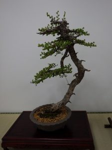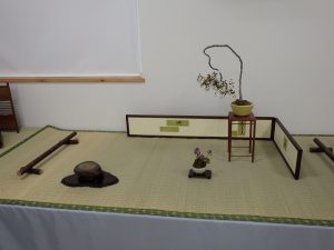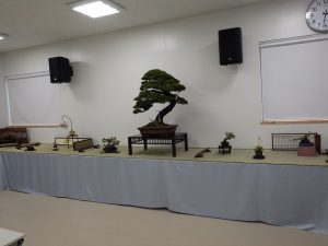 この展示会は風流盆栽会の皆さんの栽培品を15席の席飾りで展示しています。