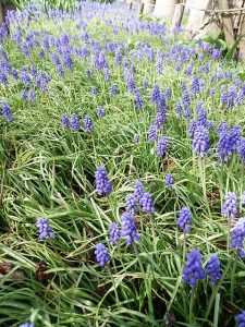 豊平公園ではムスカリの小径が鮮やかに色付いています。
