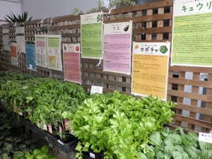 中ナスくろべえやキャベツ・ブロッコリー苗などが展示販売になっています。