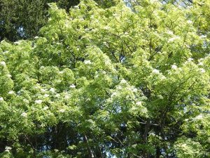 駐車場に面した大きな木の真っ白な花はナナカマド。