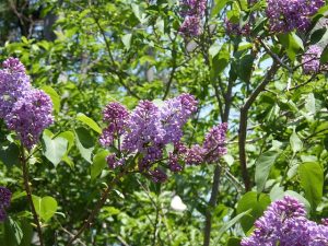 フジ棚の脇や駐車場などではライラックの花が咲き、