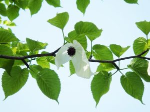 花木園では遠目にも白い苞が目立つようになってきたハンカチノキ。