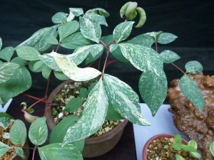 同じ植物でもそれぞれ斑の入り方がが違い、また同じ株でも毎年違う斑が入るので、育てていても色んな顔が見られるので楽しいというお話も。色々な模様の葉が展示されていて見ごたえがあります。あるお客様が葉を見て病気なんじゃないの!?と驚かれるくらい見事なモザイク模様の葉が美しいですね。