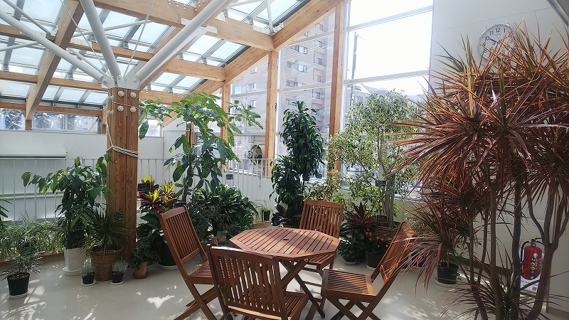2階ホールは植物に囲まれてポッカポカ♪植物に癒されて、今朝の大雪なんて吹っ飛びます。
