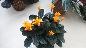 足元を見ると「カラテア クロカタ ‘ゴールドスター’」が花を咲かせています。