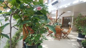 2階ホール入口には「エリスリナ ヒドュリー」の蕾が色付いてきています。別名ヒシバデイゴ。葉が菱形であることから付いた名前。深紅の花が印象的な植物です。蕾が沢山ついているので、これからまだまだ楽しめます。