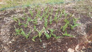 園内を徘徊する黒い誰かさんが、長い冬を耐えてせっかく出たチューリップの芽を遊んでついばむので、その対策としてネットを張って守っています。ここまで大きくなると遊ばなくなるので、来週辺りネットを回収する予定です。チューリップの周りにはムスカリが芽を出しています。